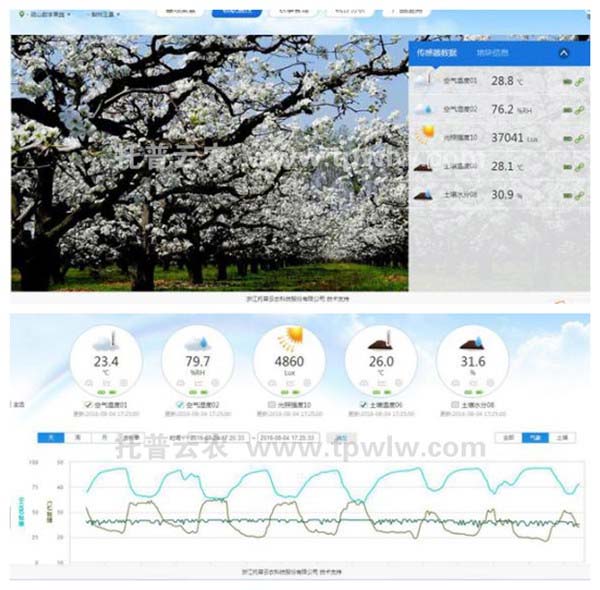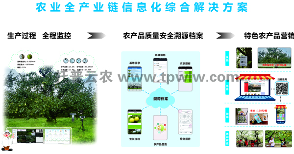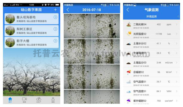 托普云農綜合管理云平臺涵蓋“數字果園”生長環境數據采集系統、視頻遠程可視化系統、多功能預警系統、農產品質量安全追溯系統、中央指揮系統、手機APP等。
