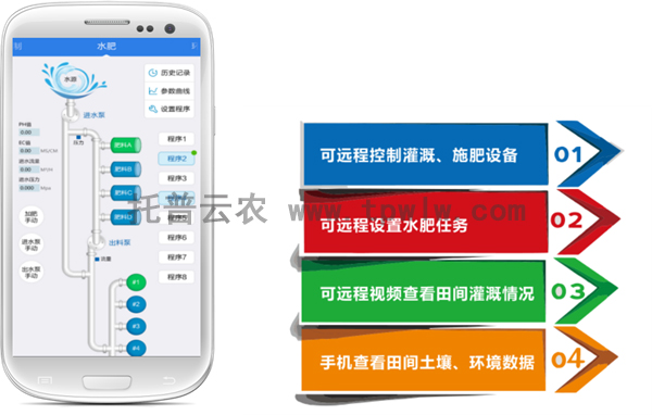 可在托普系統(tǒng)云平臺上遠程設(shè)置相應(yīng)的施肥及灌溉日期、使用總量、工作時長等參數(shù),實現(xiàn)區(qū)域用水、用肥的計量管理;現(xiàn)場安裝的360°遠紅外球形攝像頭能夠清晰直觀的看到基地的葡萄長勢和周圍的環(huán)境;還可對灌溉設(shè)施設(shè)備生成定期維護計劃,記錄維護情況,實現(xiàn)灌溉工程的精細化維護運行管理。不僅能夠充分發(fā)揮現(xiàn)有的節(jié)水設(shè)備作用,優(yōu)化調(diào)度,提高效益,更加節(jié)水節(jié)能,降低灌溉成本,提高灌溉質(zhì)量,將使灌溉更加科學(xué)、方便,提高管理水平。