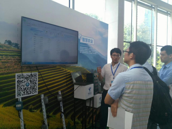 托普云農工作人員在現場為參觀人員講解智慧農業整體解決方案的應用