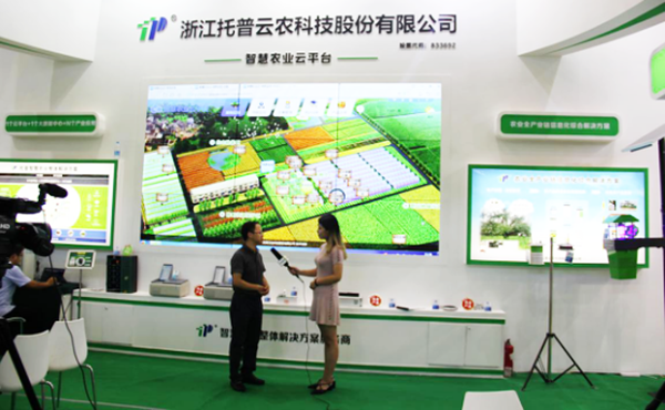 托普云農副總經理朱旭華(左一)在接受CCTV-7記者采訪