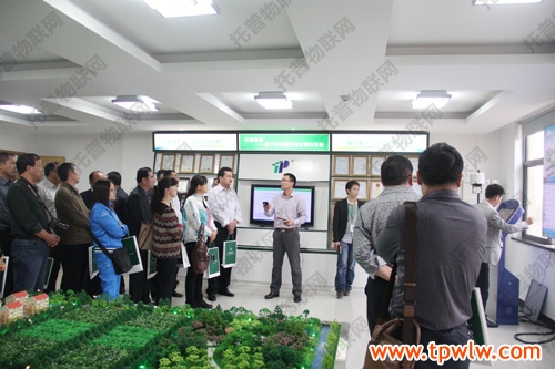 在三樓樣品室,“托普農業物聯網”吸引了新疆客人們的目光,惟妙惟肖的“農業物聯網”沙盤直觀展示了公司領先的“農業物聯網”技術應用。