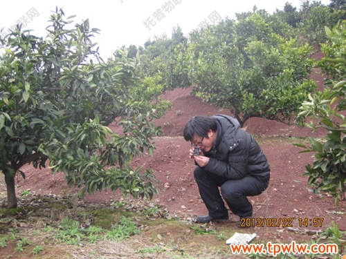 圖為:2013年2月22日,縣植保技術人員在淳安縣界首鄉柑橘觀測區調查病蟲害發生情況