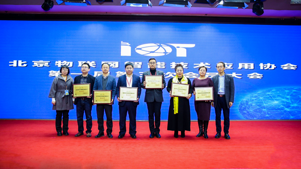 圖:托普云農副總經理(左三)帶公司領取北京物聯網智能技術應用大會會員證書