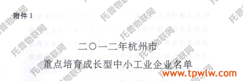 為進一步貫徹落實“實業興市”戰略,加快推進杭州市中小企業轉型升級,保持工業經濟平穩較快發展,按照《杭州市成長型中小工業企業五年培育計劃》要求,杭州市經濟和信息化委員會確定浙江托普儀器有限公司為2012年市重點培育成長型中小工業企業。