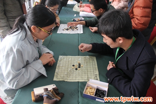 圖為:五子棋冠軍-邵偉棟(左)與亞軍-王姿舒(右)比拼