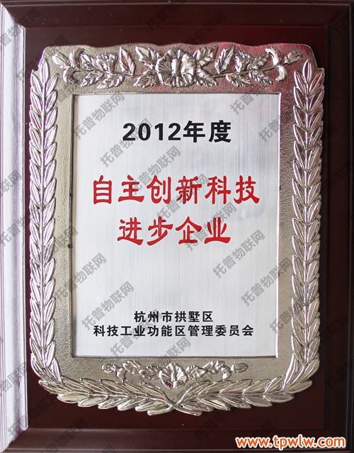 根據杭州市拱墅區科技工業功能區管委會研究決定,為了進一步引導企業自主創新,走新型工業化道路,加快發展高薪技術產業,不斷優化產品結構,特授予托普儀器“自主創新科技進步企業”榮譽稱號。