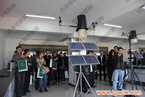 在托普的實驗中心,各位專家領導仔細地參觀了陳列的各類土壤檢測儀器,參觀過程中非常關注固定式無線多點土壤墑情監測儀、便攜式土壤墑情速測儀、土壤養分速測儀等,尤其對托普最新研發出來的便攜式農業氣象監測系統和便攜式無線墑情監測儀十分感興趣。這兩個儀器集合了固定式無線多點土壤墑情監測儀和便攜式土壤墑情速測儀的優點,既可以隨身攜帶,十分便攜,也可以通過GPRS無線傳輸,將數據上傳至網絡,工作人員通過電腦就可查詢所采集的數據。