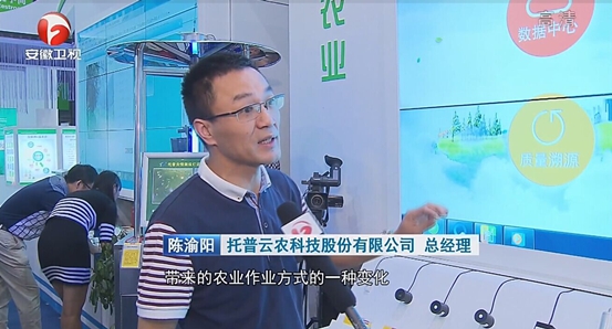 9月12日上午,2015中國安徽(合肥)農業(yè)產業(yè)化交易會在合肥濱湖國際會展中心隆重舉行。浙江托普云農科技股份有限公司(以下簡稱“托普云農”)應邀參加。安徽衛(wèi)視記者采訪了陳渝陽總經理,并在安徽新聞聯(lián)播對托普云農進行了報道。