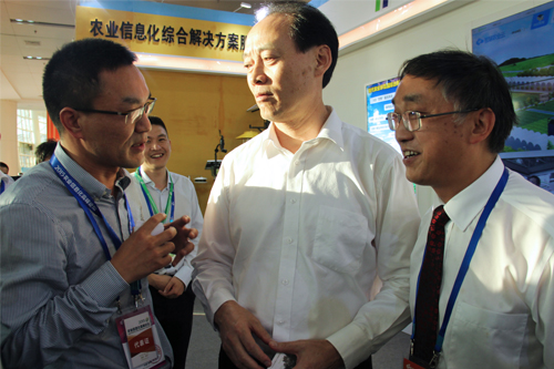 農交會期間,農業部余欣榮副部長、農業部市場與經濟信息司王小兵副司長一行蒞臨托普展區參觀指導。余副部長表示,農業物聯網技術應用除了現有的系統及硬件以外,還要與射頻技術緊密結合,提高物聯網的科技含量。屈冬玉副部長和斯洛文尼亞副總理一行也蒞臨托普展區,并與陳渝陽總經理親切交談。雙方就農業物聯網的研發推廣以及落地應用等問題進行交流。