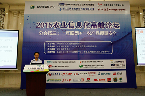 托普云農副總經理朱旭華先生在“互聯網+”農產品質量安全分論壇中講述了“物聯網技術在農業生產管理中的應用”,從農業小氣候、植物本體、病蟲害等監測信息,到建立基地信息、環境信息、生長過程(圖片、視頻)、品質指標、農事操作(用水、用肥、用藥)等農產品質量安全溯源檔案,多維度闡述農產品生產管理環節之中的源頭追溯。朱旭華副總經理在演講時表示托普云農潛心十一年聚焦我國農業信息化體系建設,以“互聯網+”為抓手,充分利用移動互聯網、大數據、云計算、物聯網等現代信息技術,結合農業生產實際需求,全面構建涵蓋農產品生產管理環節、質量安全追溯環節和銷售環節的農業物聯網體系,與現代農業產業鏈同步延伸,實現農業生產智能管理、節本增效、質量安全、拓展市場等目的,利于現代農業品牌建設,促進“互聯網+”現代農業的發展。