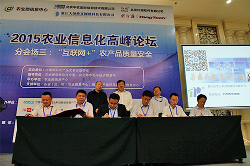 托普云農作為平臺成員之一在論壇現場還進行了隆重的農產品質量安全物聯網創新與應用推進協作平臺成立簽約儀式。農業部農產品質量安全監管局廣德福巡視員、農業部信息中心張興旺主任出席并見證。